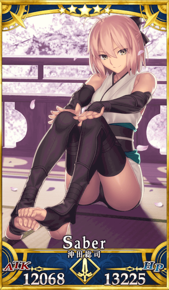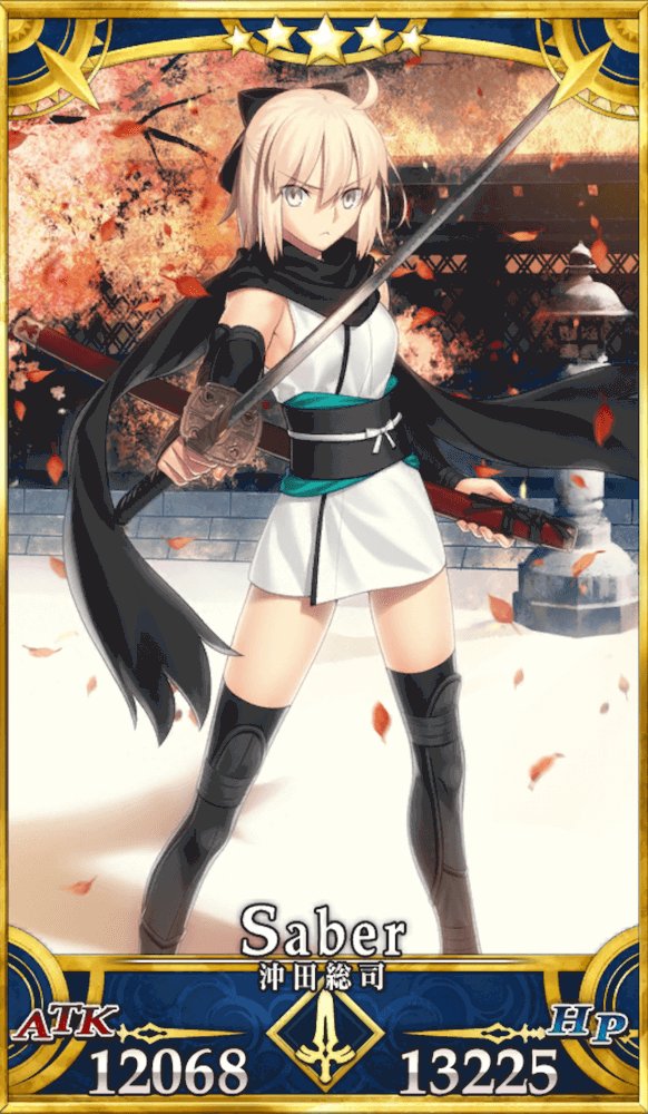 沖田総司は全サーヴァントの中で特に優秀なクイックを主軸にした、自己完結型のアタッカーである。高性能クイックにてNPとスターを大量に稼ぎ、威力を高めたクリティカルと宝具の連発で敵に大ダメージを与え続ける。
