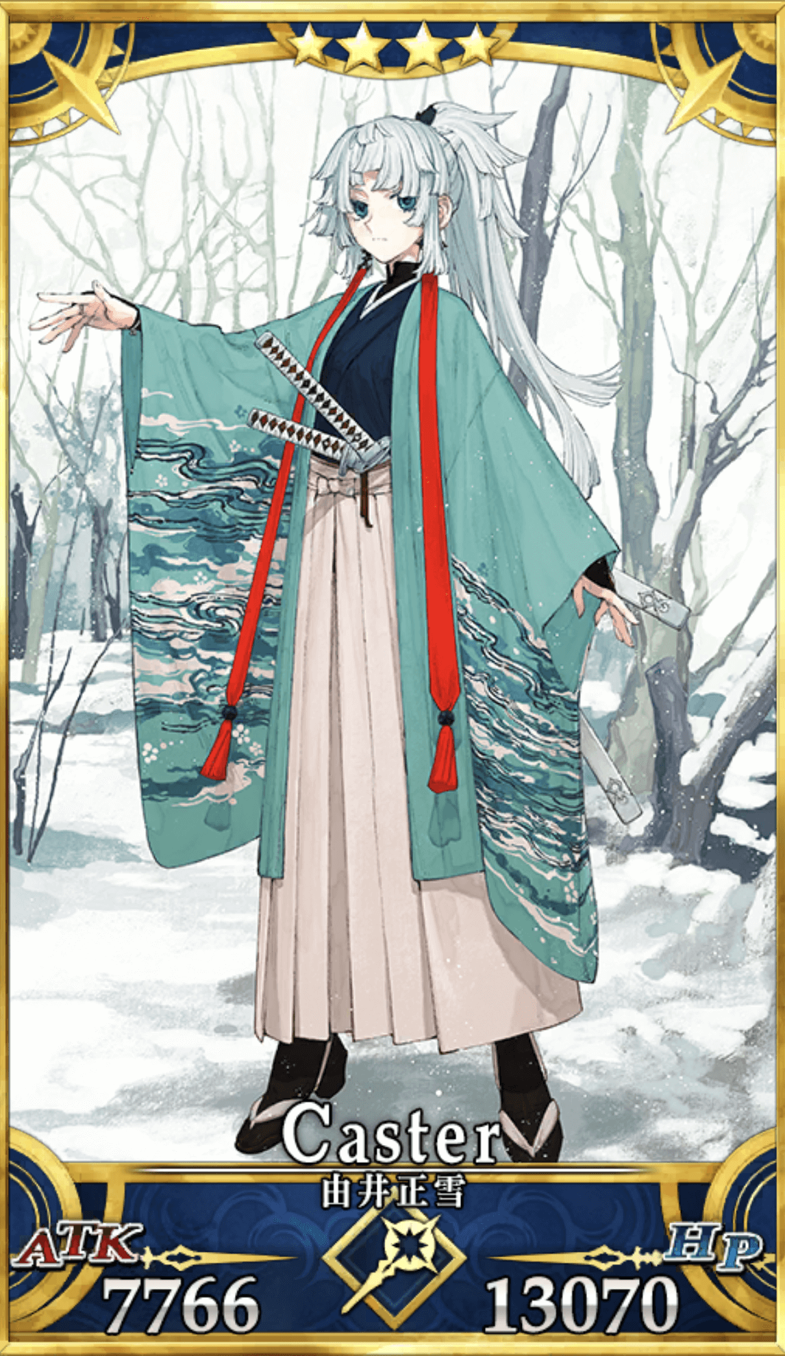 由井正雪は補助宝具の発動も考慮した運用にて、主に周回や短期戦での火力ブースト役として重宝する。特に複数の色バフを持つアタッカーへの火力補助が強力であり、時には星5以上の支援力も発揮。NP50%増加を持つため、支援なしに宝具を発動しやすいのも強みだ。