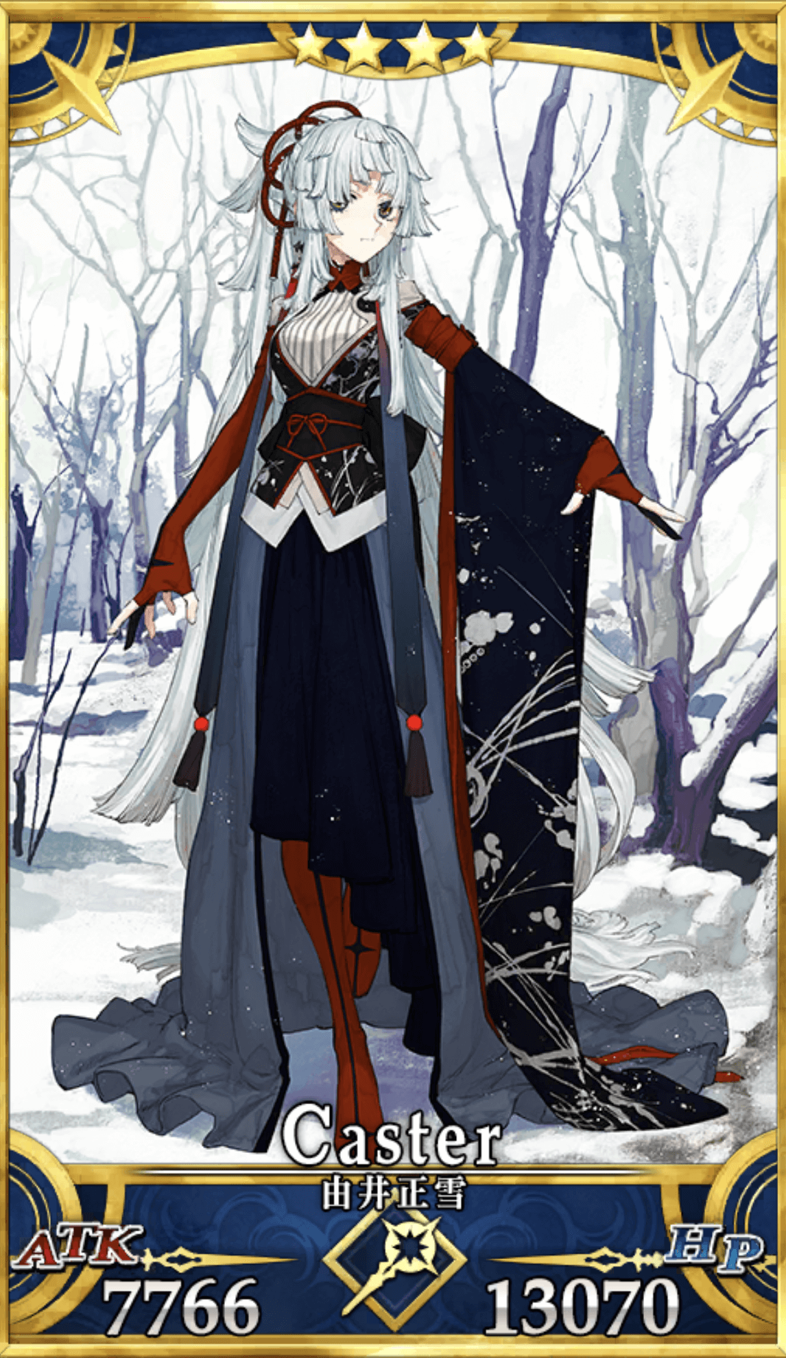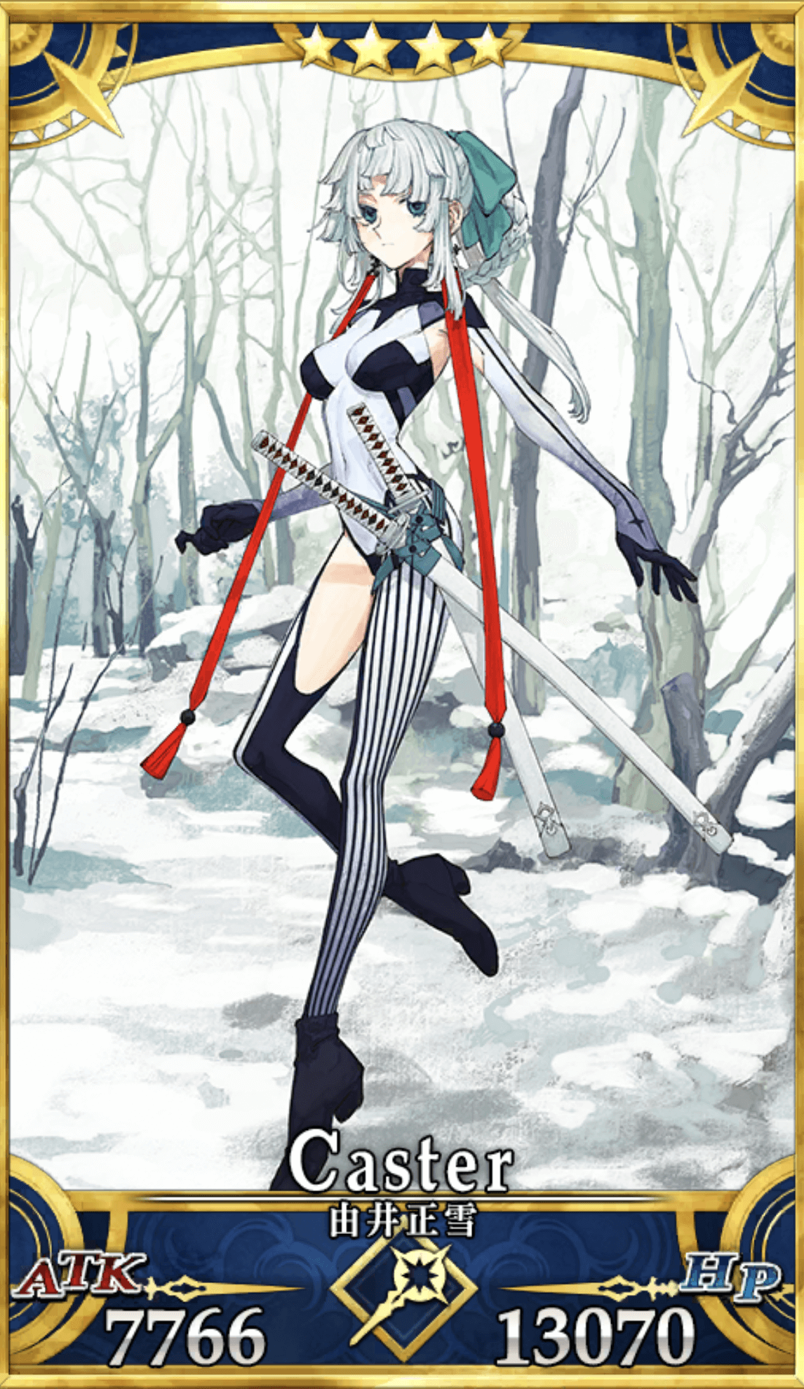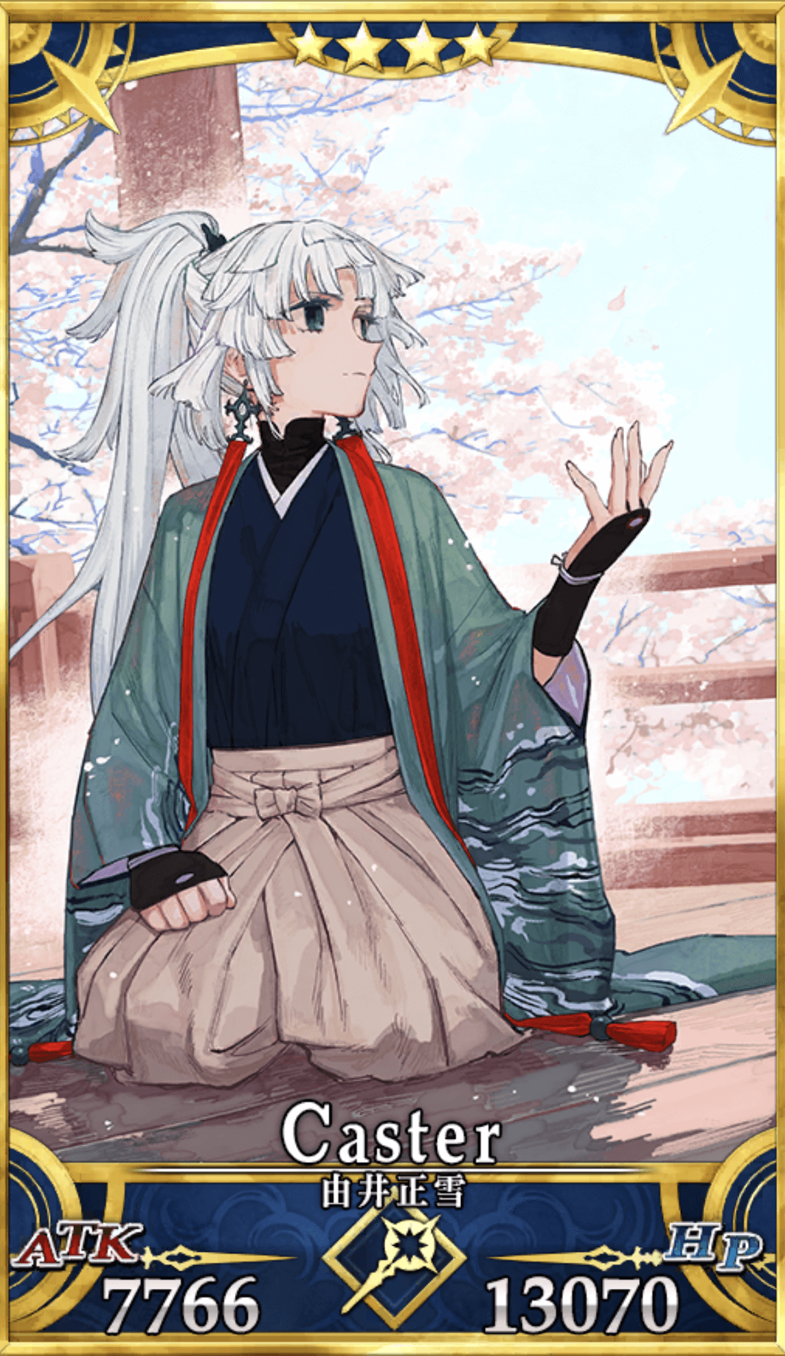 『Fate/Samurai Remnant』では実在する人物、マスターとして登場した由井正雪だが、FGOではキャスタークラスのサーヴァントとして実装された。キャスタークラスで実装されたのは、『慶安太平記』で描かれた森宗意軒に教わった幻術が発端と考えられる。
