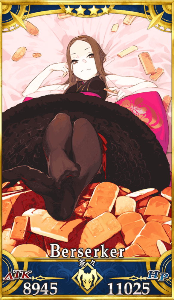 | ○黄金律(凶):B 日ノ本全ての黄金を集めたと言われる天下人の黄金を自由に使用することが可能。生粋の浪費家である茶々ととても相性の良いスキル。 「え? お金? 殿下が払うから!」 |