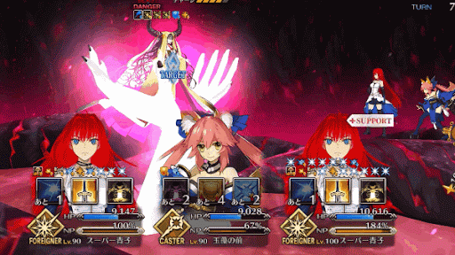 スーパー青子変化後のバスター全体攻撃は、クリティカル時でHP8万前後のダメージ期待値だ。敵がバーサーカーやフォーリナー、プリテンダーであった場合は倍の16万前後のダメージを与えられる。