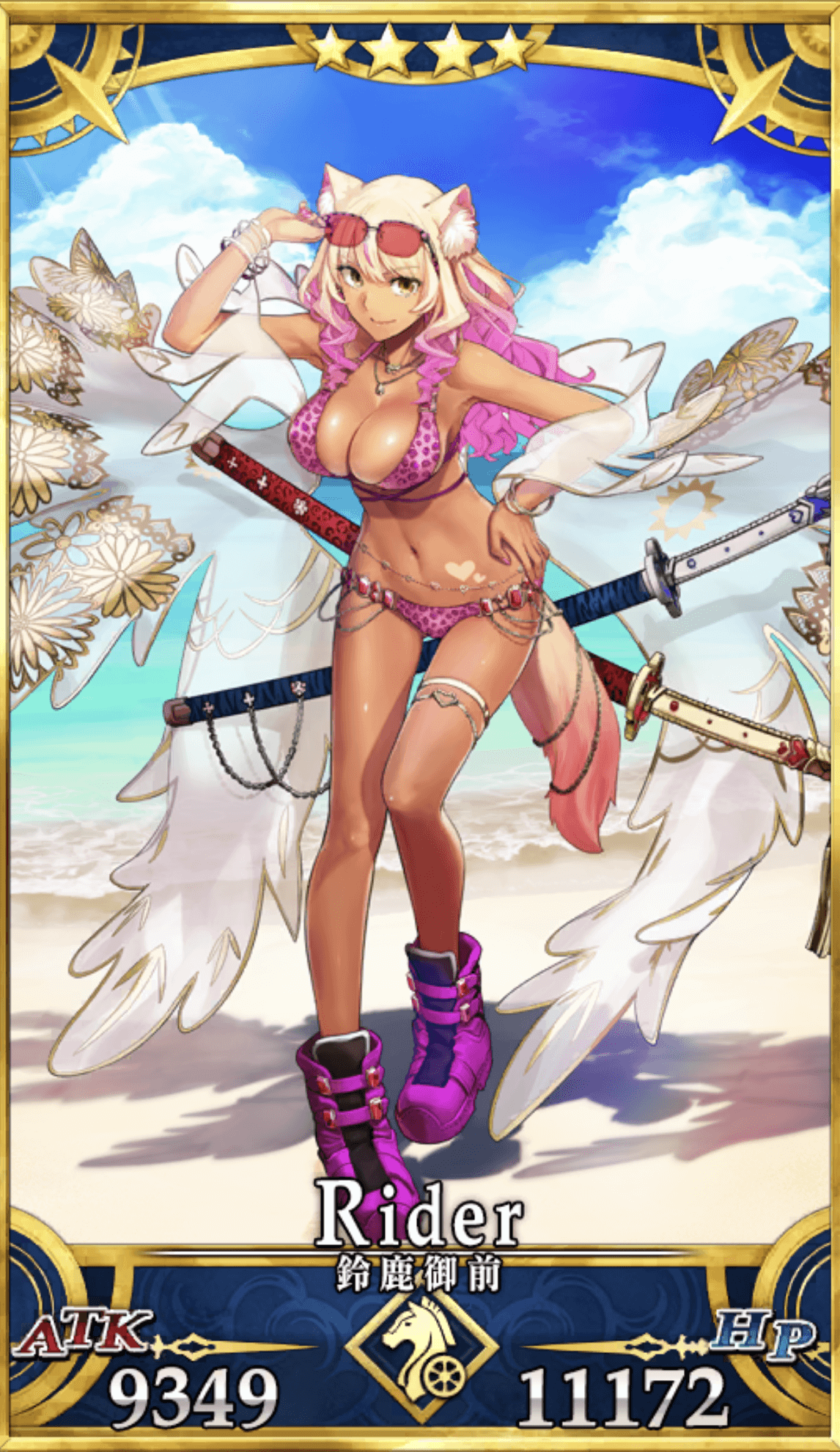 | 特性 | 天属性、中立、夏、女性、人型、騎乗、神性、鬼、夏モードのサーヴァント | |