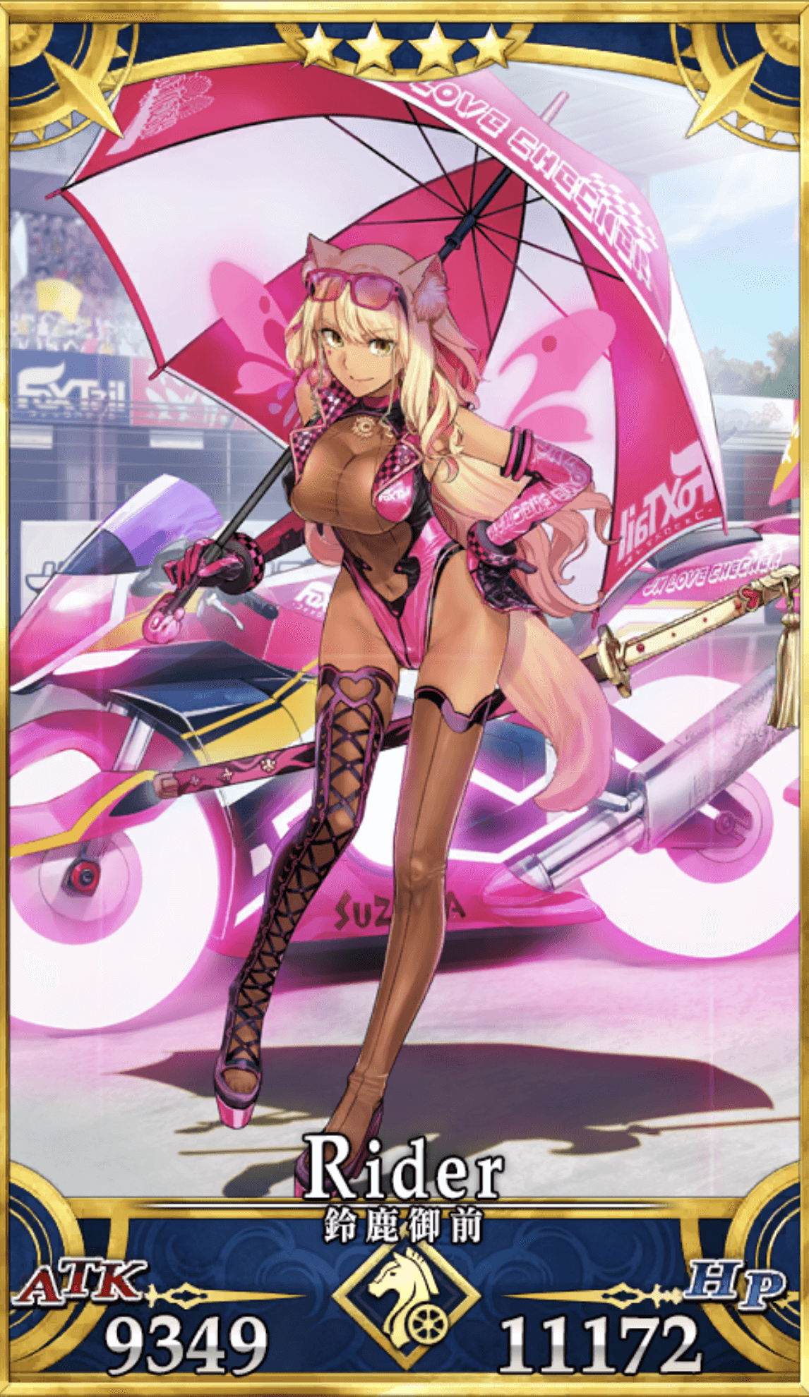| 鈴鹿は悩んでいた。 サンタになるか……水着になるか…… JKには似合うモノが多すぎる。 そんな彼女が出した答えは、夏を満喫することでした!! つまりこれぞ「鈴鹿御前〔サマバケ〕」――― 元々ライダー適性をそなえていた鈴鹿御前だが、夏の開放感! 開放感のある乗り物! 風を感じたい! やっぱコレっしょ! ……という流れでバイクをチョイスした。 折角なのでレースクイーンの姿にもなった。 一石二鳥である。 「待ってろサマー今行くし!!」 |