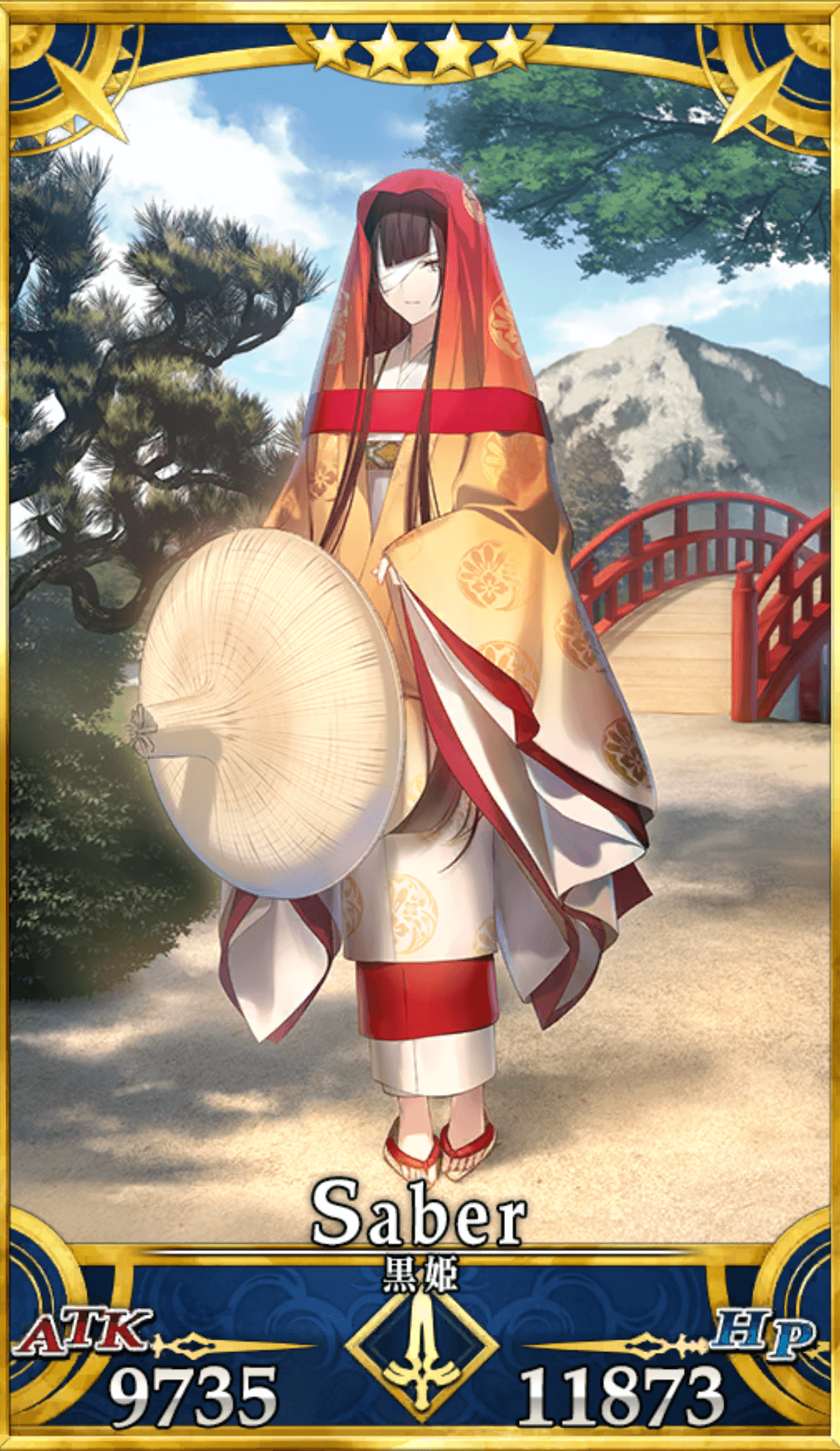 | 身長/体重:157cm・45kg 出典:黒姫物語 地域:日本 属性:秩序・善 副属性:地 性別:女性 実在の人物である可能性は否定できないが、サーヴァントの黒姫は「物語の登場人物」としての側面が濃いため、副属性は地となる。 |