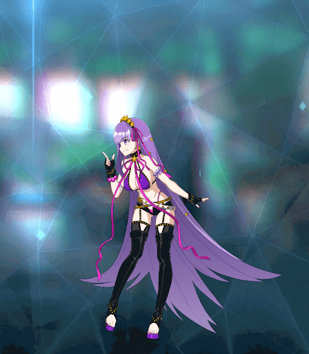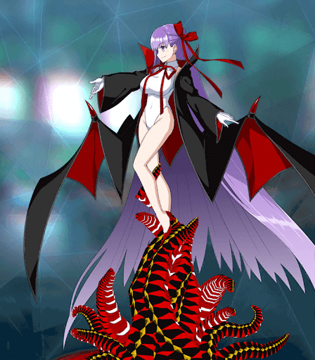 | 月の裏側に颯爽と現れた後輩系デビルヒロイン。 明るくおしゃまな後輩としてセンパイ(マスター)を振り回す。 自らを小悪魔ならぬグレートデビルと称しながら、元々はよい子だったので悪魔に徹しきれない甘さがあった……のだが、今回のBBはひと味違う。 霊基第一のBBはマスターを応援するチアガール風だが、霊基第二・霊基第三と進むごとに隠された本性が露わになっていくからだ。 かつて自分の分身として製作したアルターエゴたち(パッションリップ、メルトリリス等)は女神のエッセンスを合成されたハイ・サーヴァントだったが、BBも幾つかの“神性”と融合し、普段より攻撃的な霊基に生まれ変わっている。 |