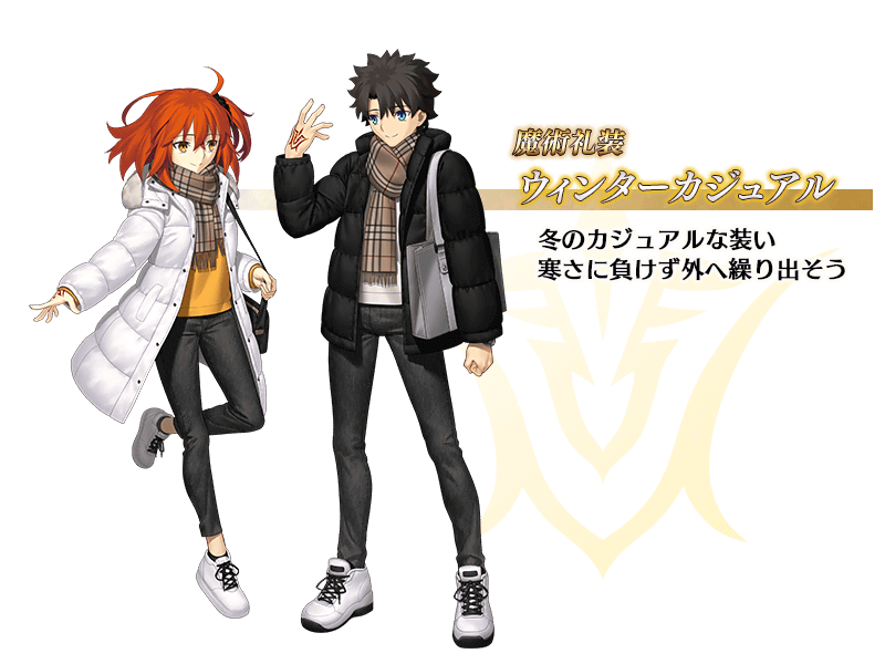 FGO(フェイトグランドオーダー)の魔術礼装(マスター礼装)「ウィンターカジュアル」の詳しい性能をご紹介。使用できるスキルや効果倍率、運用方法を掲載しているので、FGOでパーティを編成する時の参考にどうぞ。