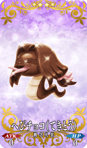 FGOのエウリュアレから貰えるバレンタイン礼装「へびチョコ(てきとう)」のイラストや解説を紹介。バレンタインイベントで貰う時のフルボイスシナリオ動画も掲載しているので、Fate/Grand Order(フェイトグランドオーダー)攻略の参考にどうぞ。