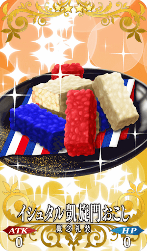 FGOの水着イシュタルから貰えるバレンタイン礼装「イシュタル凱旋門おこし」のイラストや解説を紹介。バレンタインイベントで貰う時のフルボイスシナリオ動画も掲載しているので、Fate/Grand Order(フェイトグランドオーダー)攻略の参考にどうぞ。