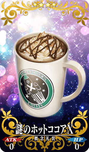 ほんとうはお茶党なんです、わたし。 でもたまにコーヒーやココアが飲みたくなることも。 そんな時はスペースバックス。サーヴァント界の最辺境・惑星トトーリにも出店したチェーン店です。 正体不明のダークマターシロップをふんだんに使った、 わたしのお気に入りメニューです♪ |