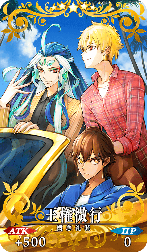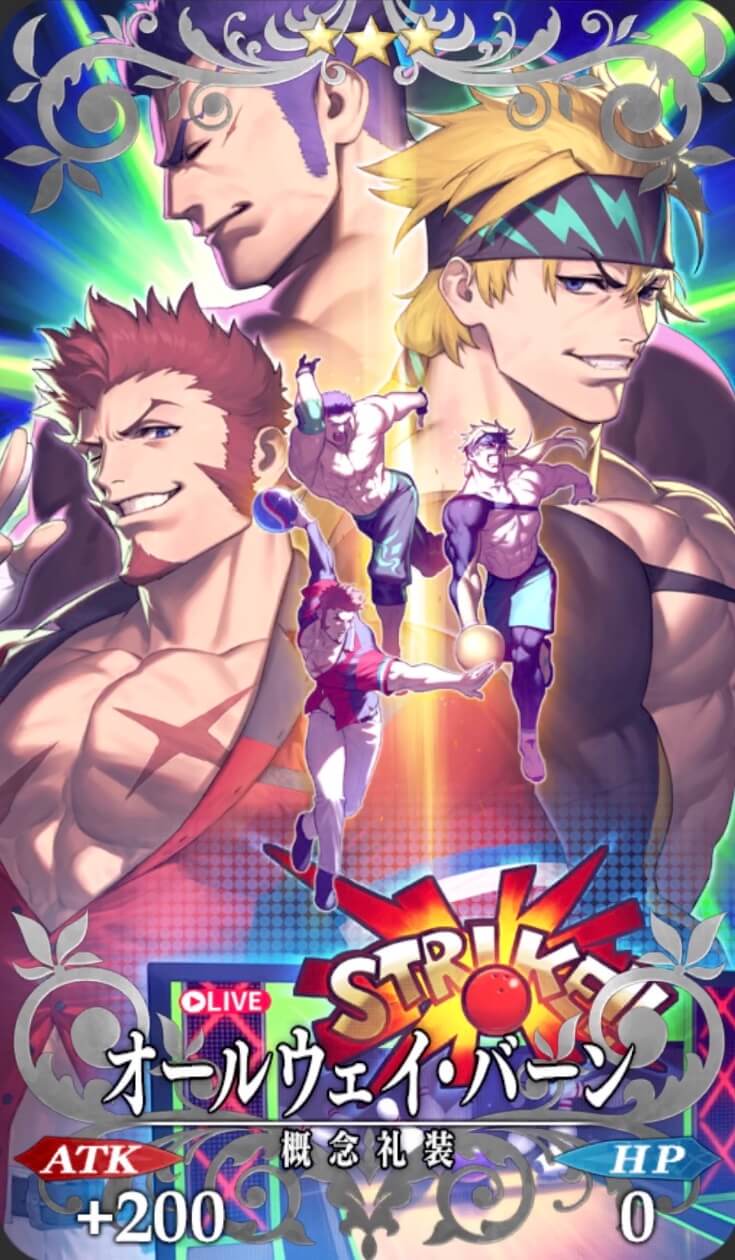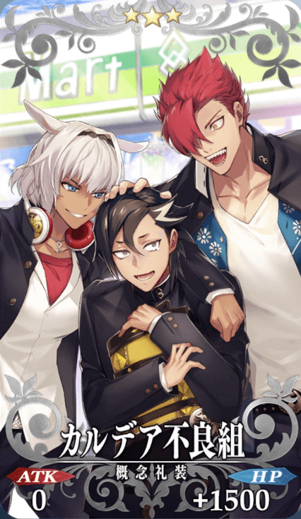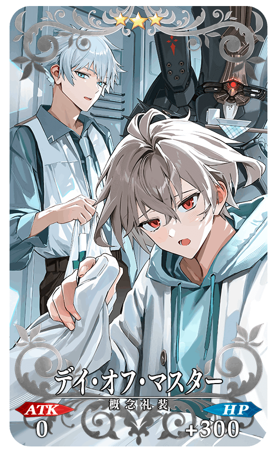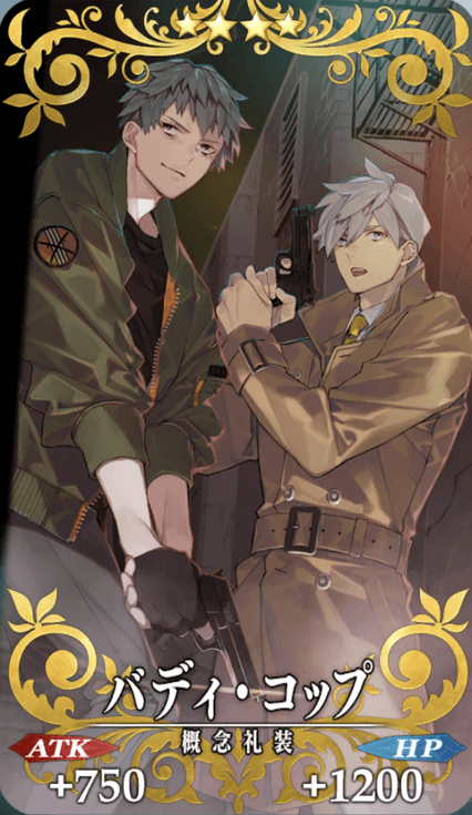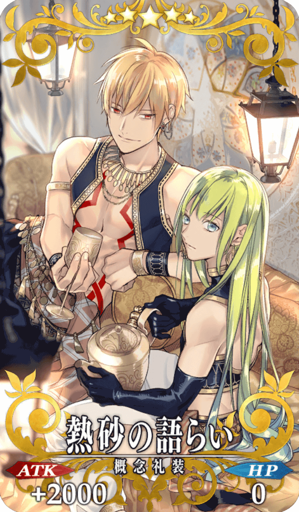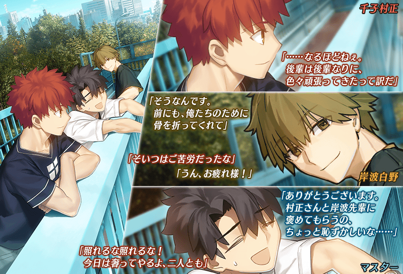 ・男性限定の日替わりPUガチャ開催 ・新規実装概念礼装1枚を配布 ・特別ログインボーナスを実施 ・新規礼装に掛け合いボイス追加 ・マイルームに2騎配置機能追加 |