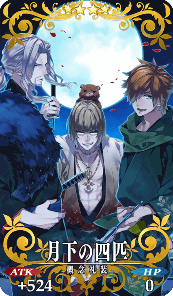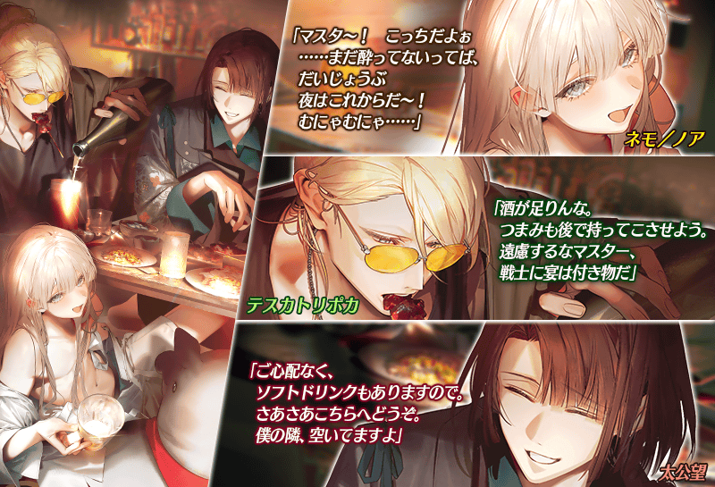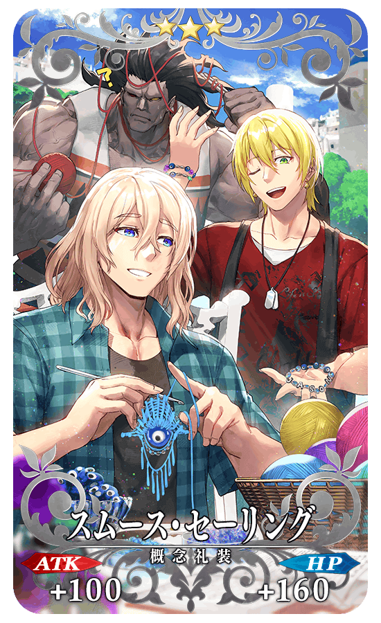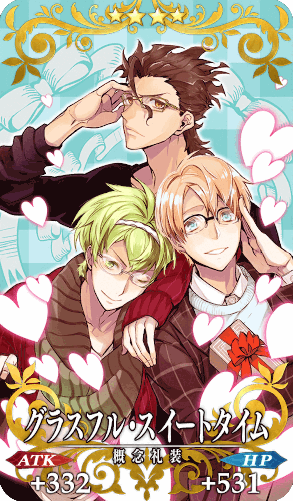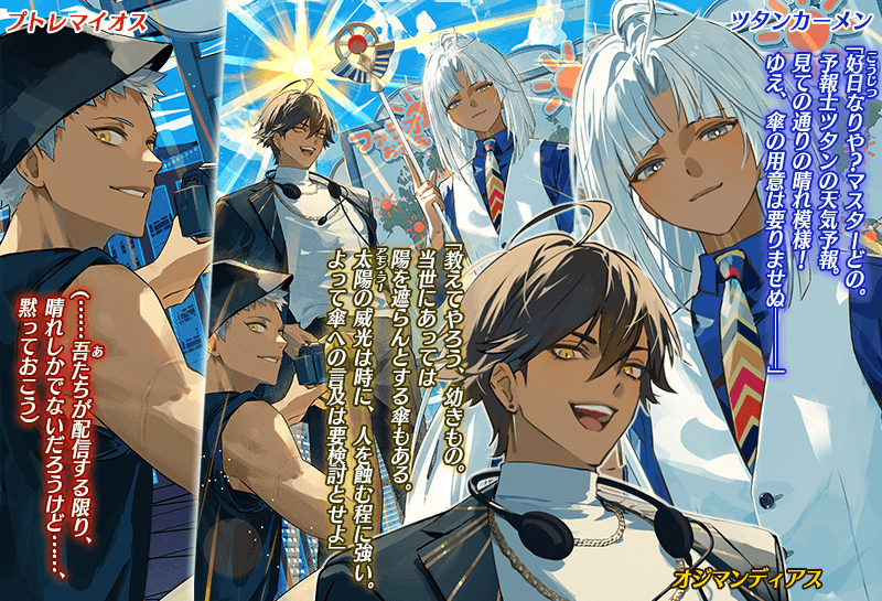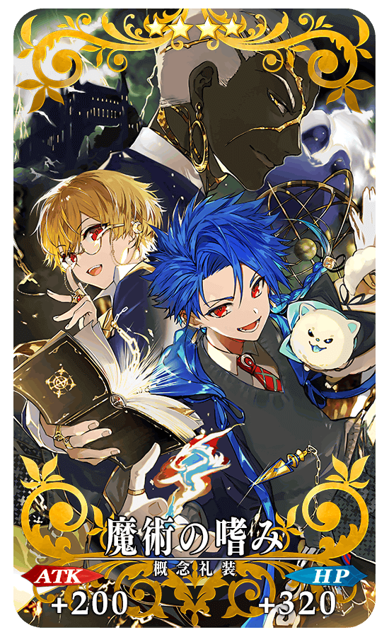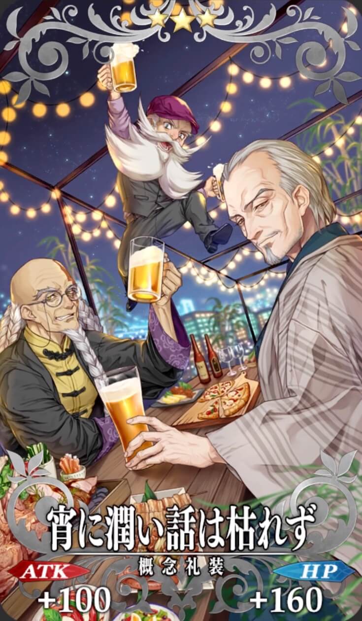 ・男性限定の日替わりPUガチャ開催 ・新規実装概念礼装1枚を配布 ・特別ログインボーナスを実施 ・新規礼装に掛け合いボイス追加 ・マイルームに2騎配置機能追加 |