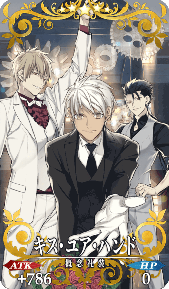 ・男性限定の日替わりPUガチャ開催 ・新規実装概念礼装1枚を配布 ┗9枚の中から好きな1枚を選択 |