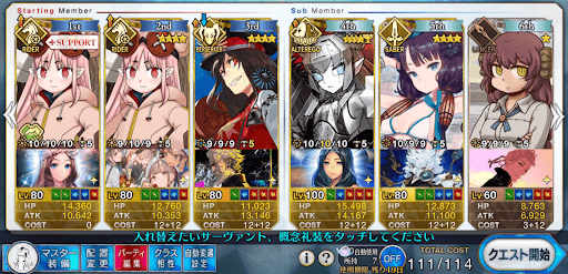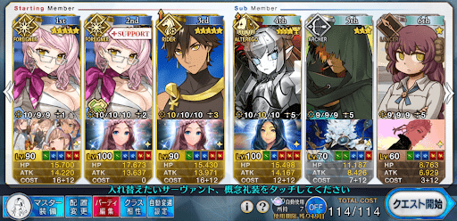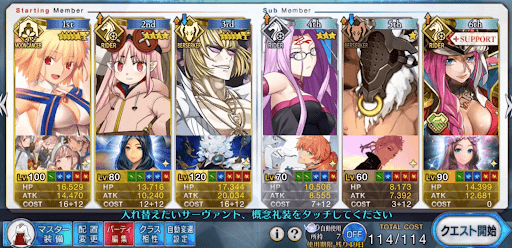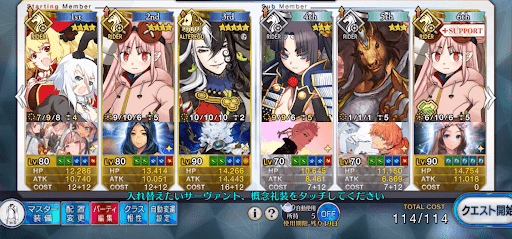 | 全体宝具2騎の編成例 | 全体宝具1騎の編成例 |