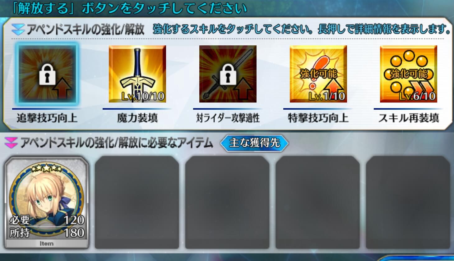 アペンドスキルの解放に必要