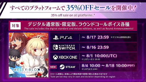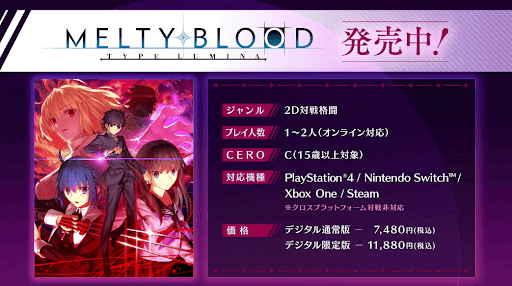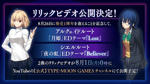 | 概要 | ・メルブラに牛若丸と巌窟王が参戦 ・アルトリアPUガチャ開催 ・FGOで関連キャラの強化成功率2倍 ・ログインで記念礼装3種獲得 ・メルブラ礼装獲得クエがレアプリ交換に追加 |