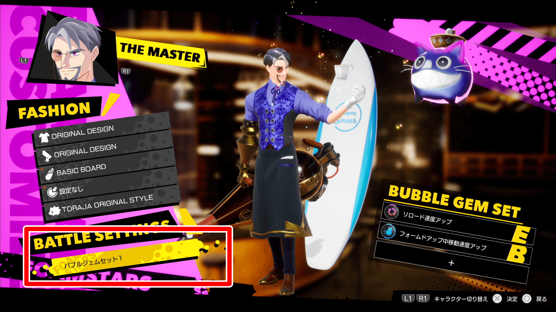 バブルジェムは、キャラのカスタマイズから付け替えが可能だ。ラウンジにいる「LOUNGE SERVICE」に話しかけても可能なため、強化したいキャラを選んでバブルジェムを付けてみよう。
