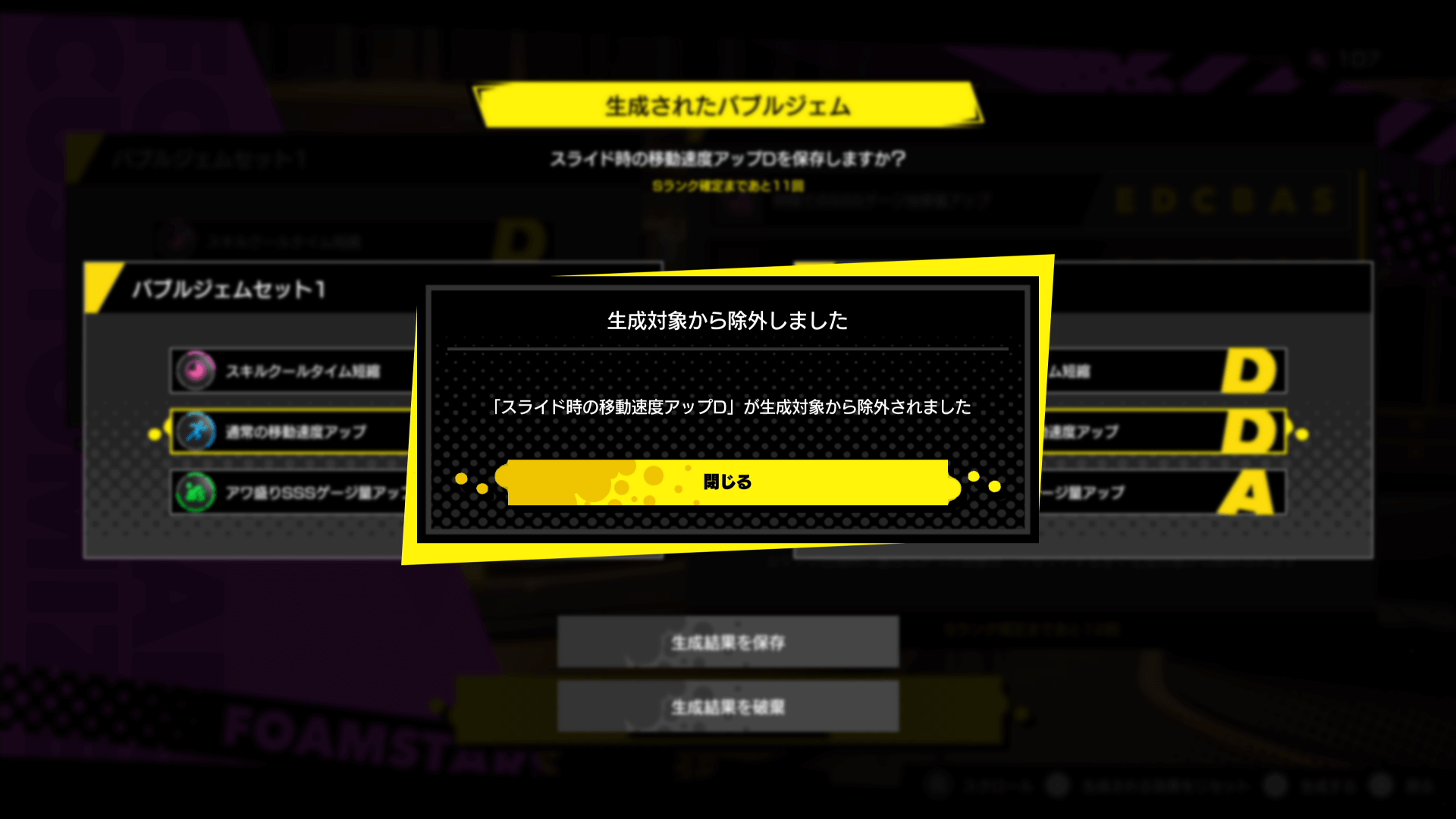 破棄したバブルジェムは、破棄した効果まるごと生成対象から消えるのではなく、破棄したレア度が出現しなくなる。一気にジェムの生成対象が消えるわけではないため、根気よくジェムを取り付けていこう。