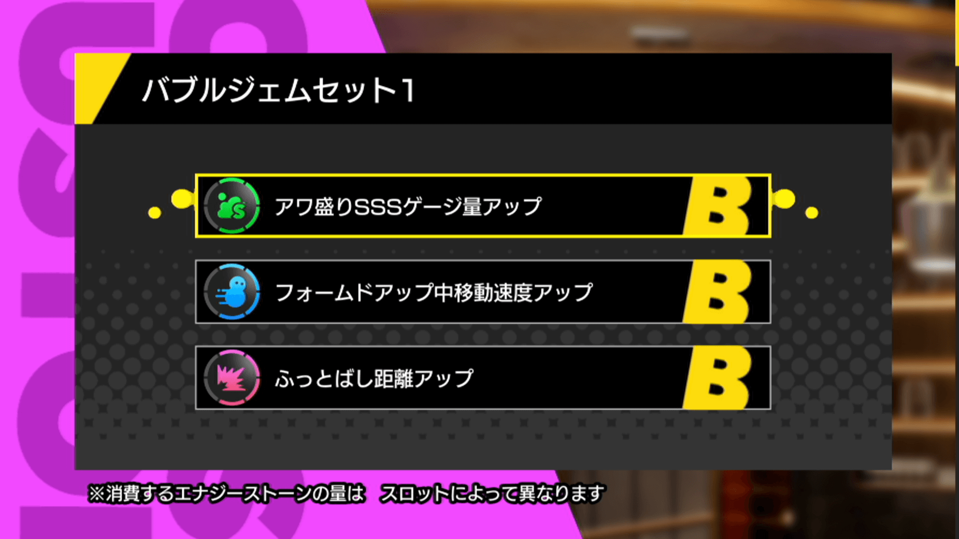 味方をサポートしたいときは、回復量アップなどがおすすめ。チルではなく周囲をアワで塗ったときのSSSゲージ量アップや味方を助けたときの回復量を上げれば、味方の戦闘をサポートできる。