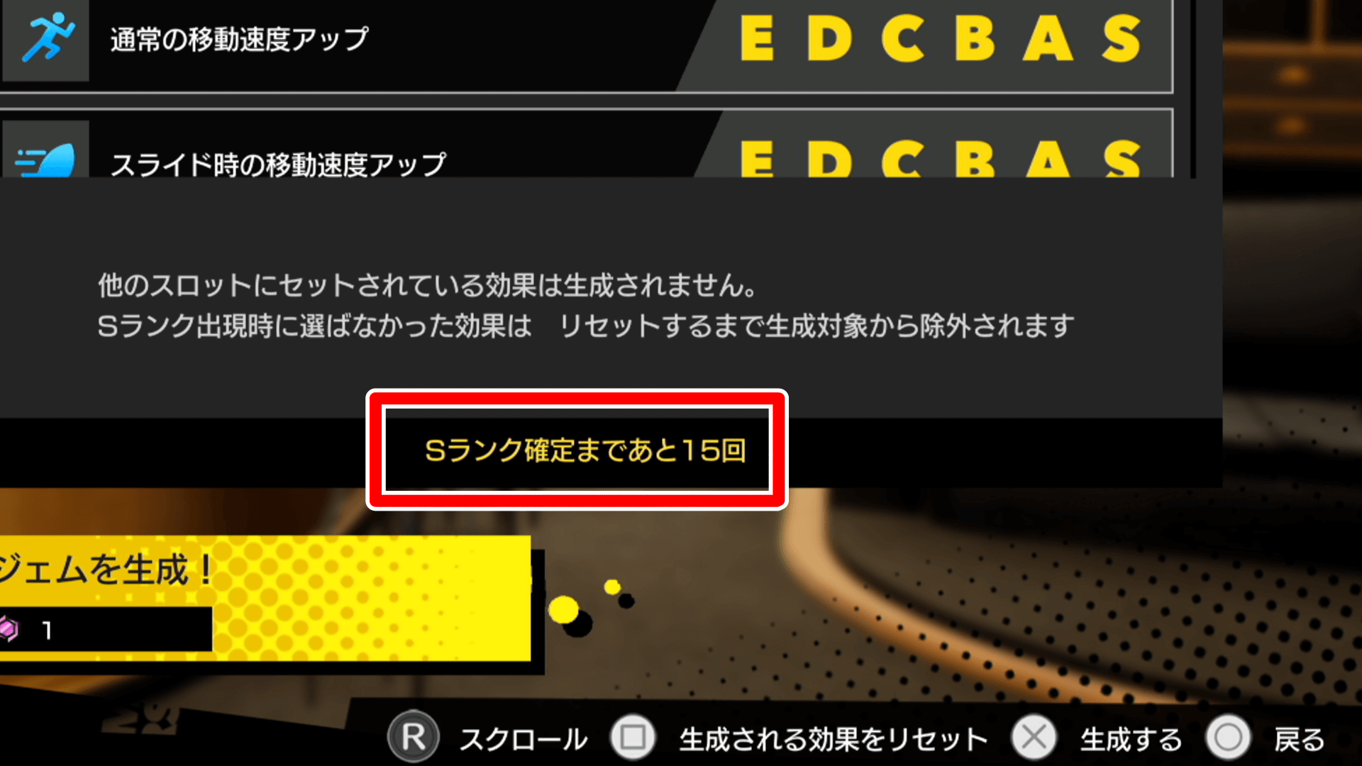 バブルジェムは、同枠で15回付け替えると確定でSランクのジェムが付与される。Sランクは確定だが、その効果がキャラに適しているかは運次第となる。