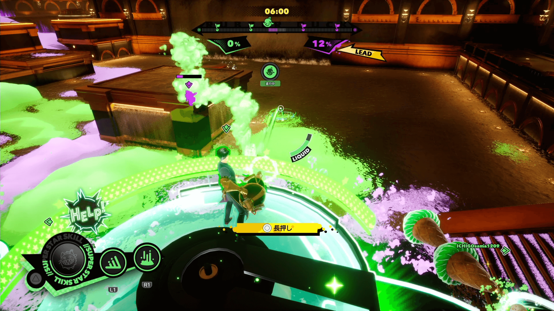 オブジェを占領して台にいると、◯ボタン長押しでダンスができる。ダンスをするとメーターが溜まっていき、一気に進むダッシュを発動可能だ。