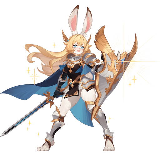| 『この構え・・・たくさん練習しましたから!』 ルミエルは教会前の森で道に迷い、泣いていた。そんな彼女を見つけたのは、まだ修行中の修道女ロキシアだった。 ロキシアの仮面は少し怖かったが、その下からは太陽の光のような温かさを感じた。 その日からルミエルは教会で暮らすことになった。 明るく朗らかに成長したルミエルは次第に強靭なロキシアに憧れを抱き、いつか彼女のように教会を守る立派な聖騎士になろうと訓練を始めた。 時が流れ、冒険に旅立ったルイ一行が教会に立ち寄った時、ロキシアは静かに彼女を呼んだ。 「ルミエル。 あなたにも外の世界へ出る時が来たのよ」 イヤだと言いたかったが・・・胸を高鳴らせるこの感情は、間違いなく期待だった。 なぜ自分だけがウサギのような大きな耳を持って生まれたのか、そして…自分はどこから来たのか。 すべての答えは、教会の外に広がる世界にあるのかもしれない。 |