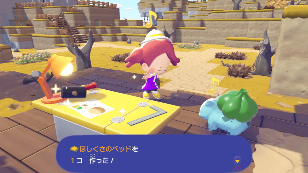 材料を集めれば、プレイヤーはクラフト台で家具やオモチャなどを作ったり、ライフラインに繋がる電柱や道路を作れる。ポケモンにあげたり、設置したりすることでより多くのポケモンに喜んでもらえるぞ。