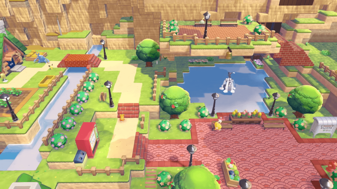 「ぽこ あ ポケモン」は、ポケモンたちが中心となって街を作っていく「スローライフ・サンドボックス」ゲームだ。プレイヤーはニンゲンに変身した「メタモン」を操作して、他のポケモンの「わざ」を使って街作りを行う。