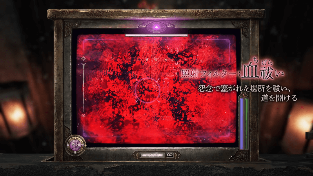 リメイクにあたり、射影機には「ピント」「ズーム」「フィルター」という新機能が追加された。特にフィルターは探索から戦闘まで幅広い用途に使えるようだ。