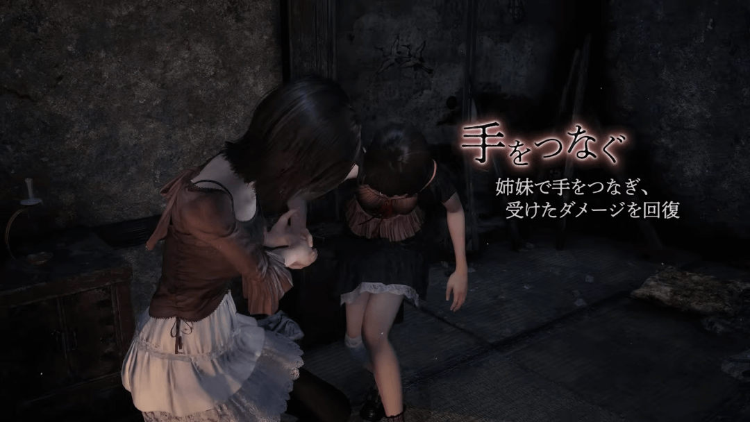 本作では「繭と手を繋ぐ」というアクションが追加されており、繭の体力と霊力を回復することが可能だ。なお、プレイヤーは双子の妹である「澪」を主に操作し、ときには姉である「繭」を守りつつ、敵と戦うこともある。