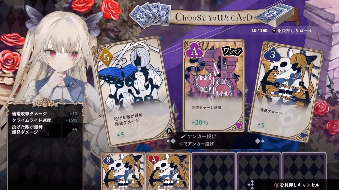 カードの効果以外にも、5枚の組み合わせで役が完成し、カードの効果も上がっていく。カード効果と役の組み合わせで、プレイヤーはビルドを形成できるぞ。