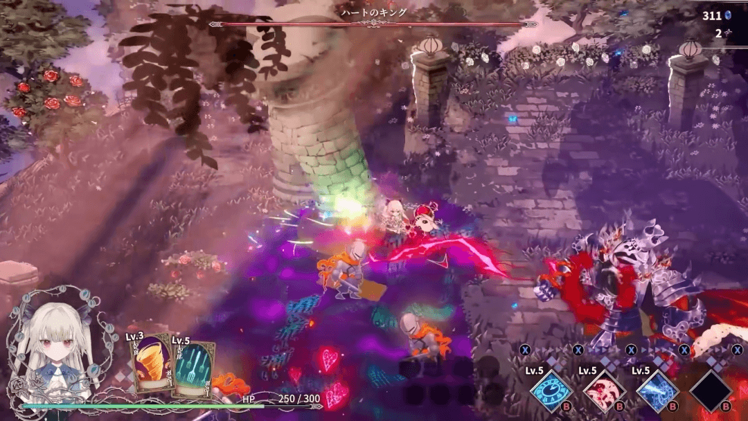 クライムライトの公式ジャンルは「懺悔して強くなるローグライクアクション」だ。死者の魂が囚われる牢獄〈ワンダーランド〉を舞台に、主人公の「アリス」をはじめとした少女たちが自らの罪の痛みに触れながら自由を求めて戦う。