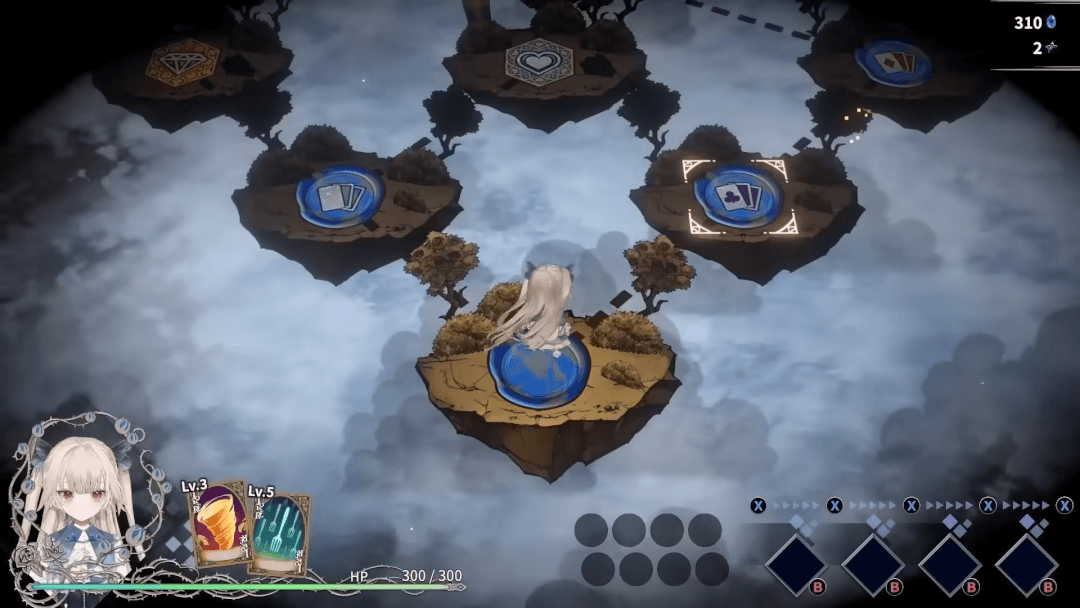クライムライトは、《ワンダーランド》を踏破するため、ステージを攻略していく。ステージクリア時には3枚のトランプスキルカードから1枚を選んで手札に加えられ、カードの効果で戦闘を有利にできる。