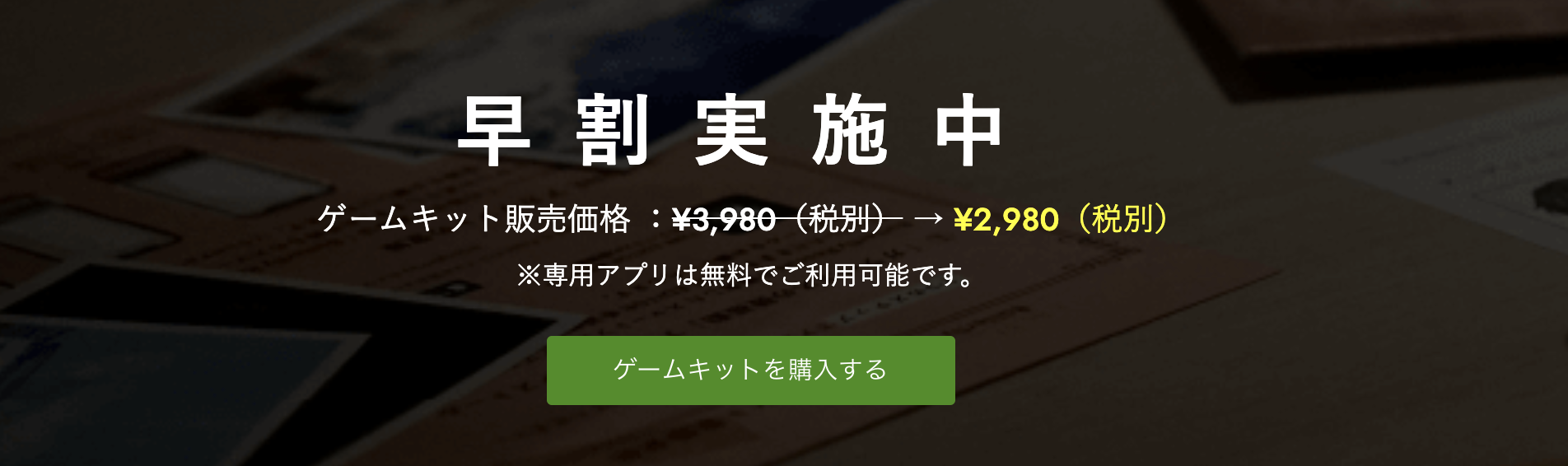 ガラパゴスの微振動では現在事前予約を受付中だ。事前予約すると、1,000円割引の2,980円で購入可能だ。本ゲームはアプリ購入ではなく、アプリでデータを読み込むためのゲームキットを購入する形式だ。ゲームキットは3営業日以内に郵送されるようだ。