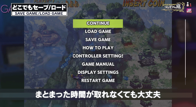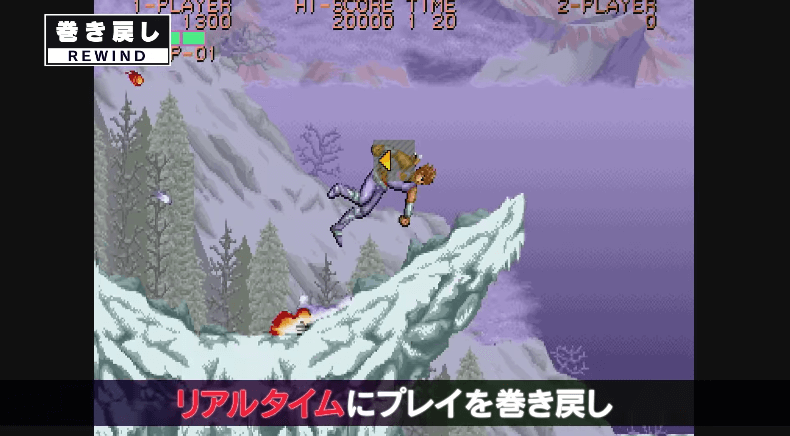 カプコンアーケードスタジアムでは、ゲームプレイ中にミスをしても、時間を巻き戻してすぐにリトライできる。ストレスフリーな「巻き戻し」機能を利用して、気軽にリトライしよう。