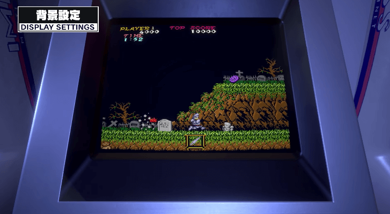 各タイトルをプレイする際、アーケード筐体(きょうたい)でのプレイを彷彿させるフィルターや背景を設定可能だ。アーケード筐体のデザインも複数種類用意されており、プレイと連動してボタンやレバーが動く。自宅にいながらゲームセンター気分を味わえる。