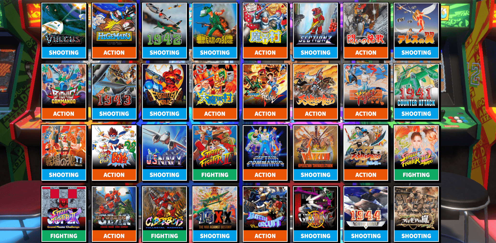 本作には、1984年から2001年にゲームセンターを席巻したシューティング、アクション、対戦格闘などの名作タイトル32個が収録されている。