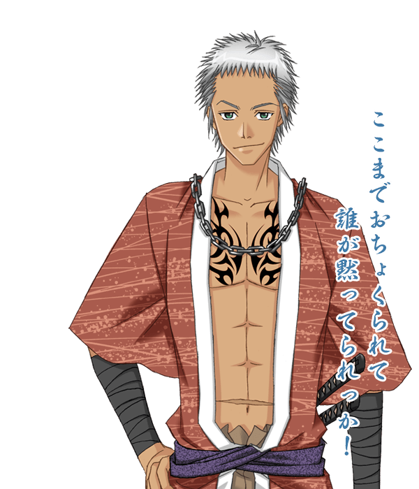 何事も形から先に入るため肩書きに弱く、有名所の服や刀に目が無い。誰とでもすぐ打ち解けるが、根っからの女好きであるため、軽薄な男と見られがち。