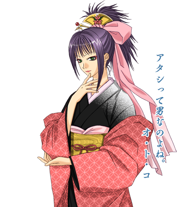 あでやかな女性の格好をしているが、実は男性。