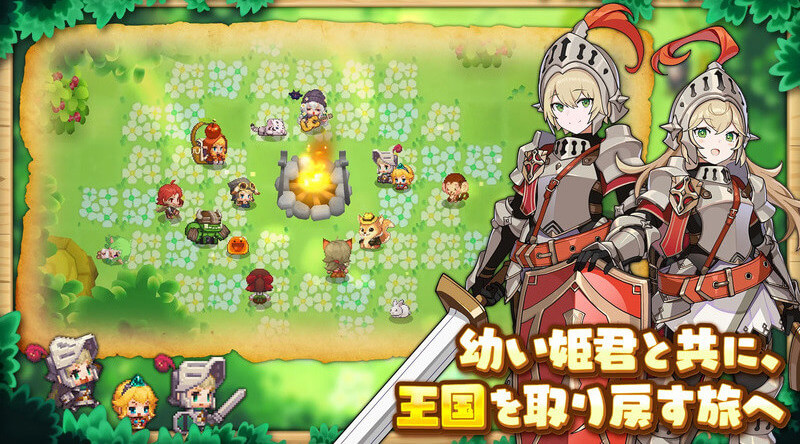 ガーディアンテイルズは、運命に選ばれた新米騎士がまだ幼い亡国の姫と一緒にドット絵の世界「カンタベリー」を冒険するアクションRPGだ。謎やパズルを解いて道を切り開き、手強い敵を軽快なアクションで倒していく。探索要素が豊富でステージごとに隠しアイテム探しも楽しめるぞ。