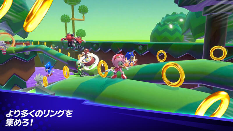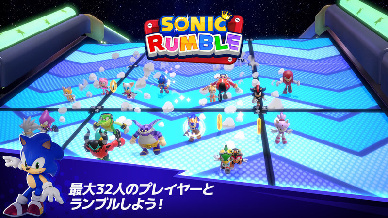 ソニックランブルは、32人でのマルチプレイ対戦が楽しめるパーティーロワイヤルゲームだ。プレイヤーは『ソニック』シリーズおなじみのキャラクターたちを操作して、ステージを勝ち抜いていき優勝を目指す。