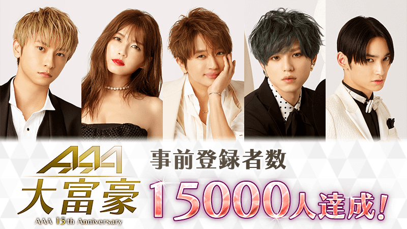 AAA大富豪は2021年11月11日より、事前登録を受付していた。事前登録者数は11月12日にして1万5千人を達成し、すべての特典の配布が確定済みだ。