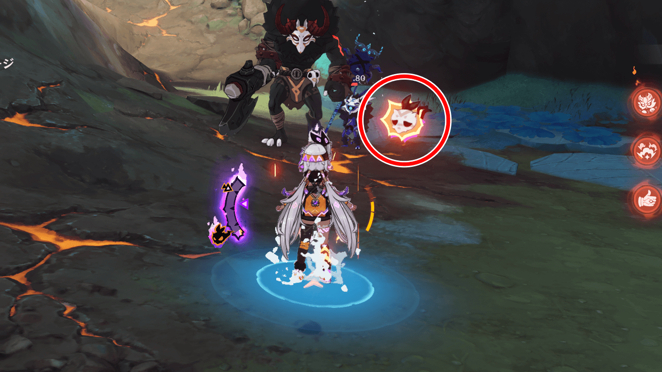 なお、現在のバフ量はキャラの横に出ているマークで判断できる。イアンサが応援している時は最大バフ時、しょんぼりしたお面の時はバフ量が低下している合図だ。元素スキルで夜魂値を最大まで回復できるため、元素爆発後→元素スキルの順で発動するのがおすすめ。