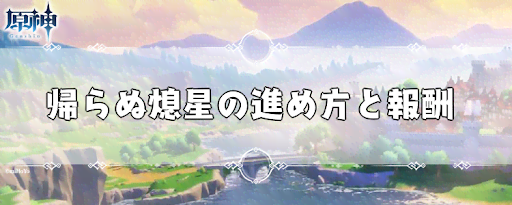 原神(げんしん)の帰らぬ熄星について解説。イベント商店での交換商品一覧やおすすめのアイテム、最速でフィッシュルの入手条件(皇女の契約)を満たす手順に加え、「未知なる星」「怪しい夢の星」「運命の星」の攻略手順や「隕石の残骸回収」「空から落ちてくる星」の攻略ポイントなども掲載しているため、原神攻略の際は参考にどうぞ。