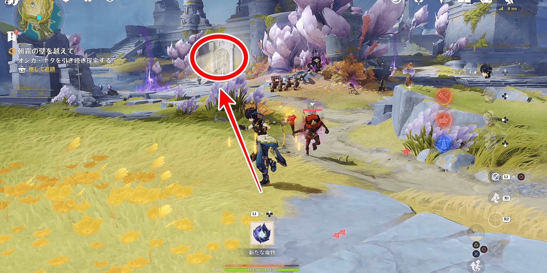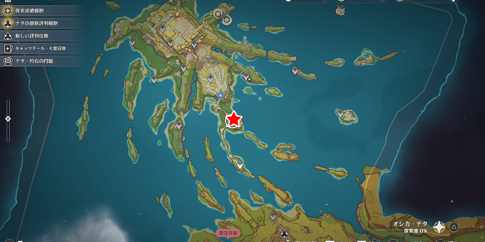 「灰燼に埋もれた都市」は、オシカナタの七天神像付近で発生する。「灰燼に埋もれた都市」発生には、前提任務「約束と忘却の間に」のクリアが必要だと予想されるため、先に進めておこう。