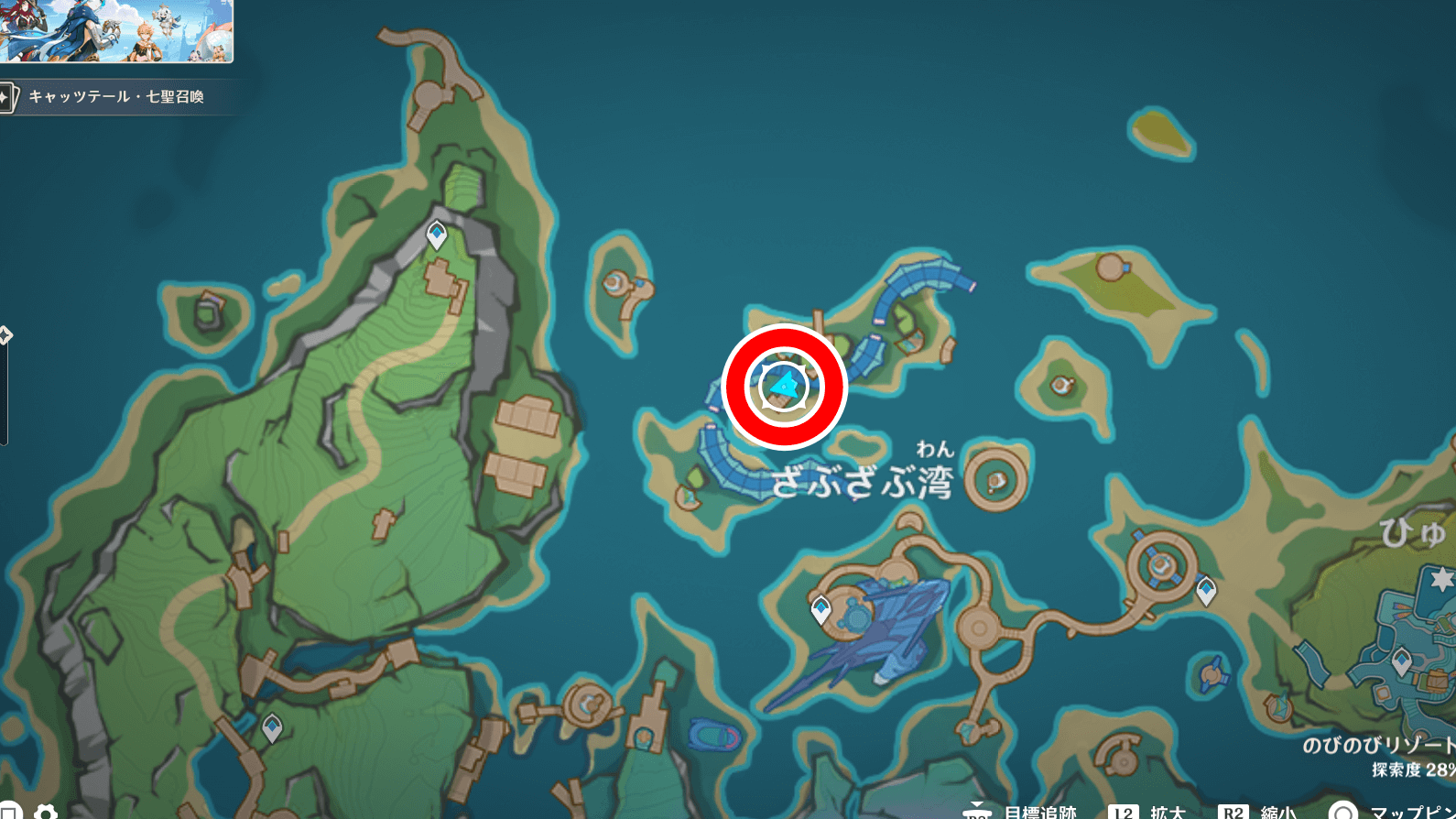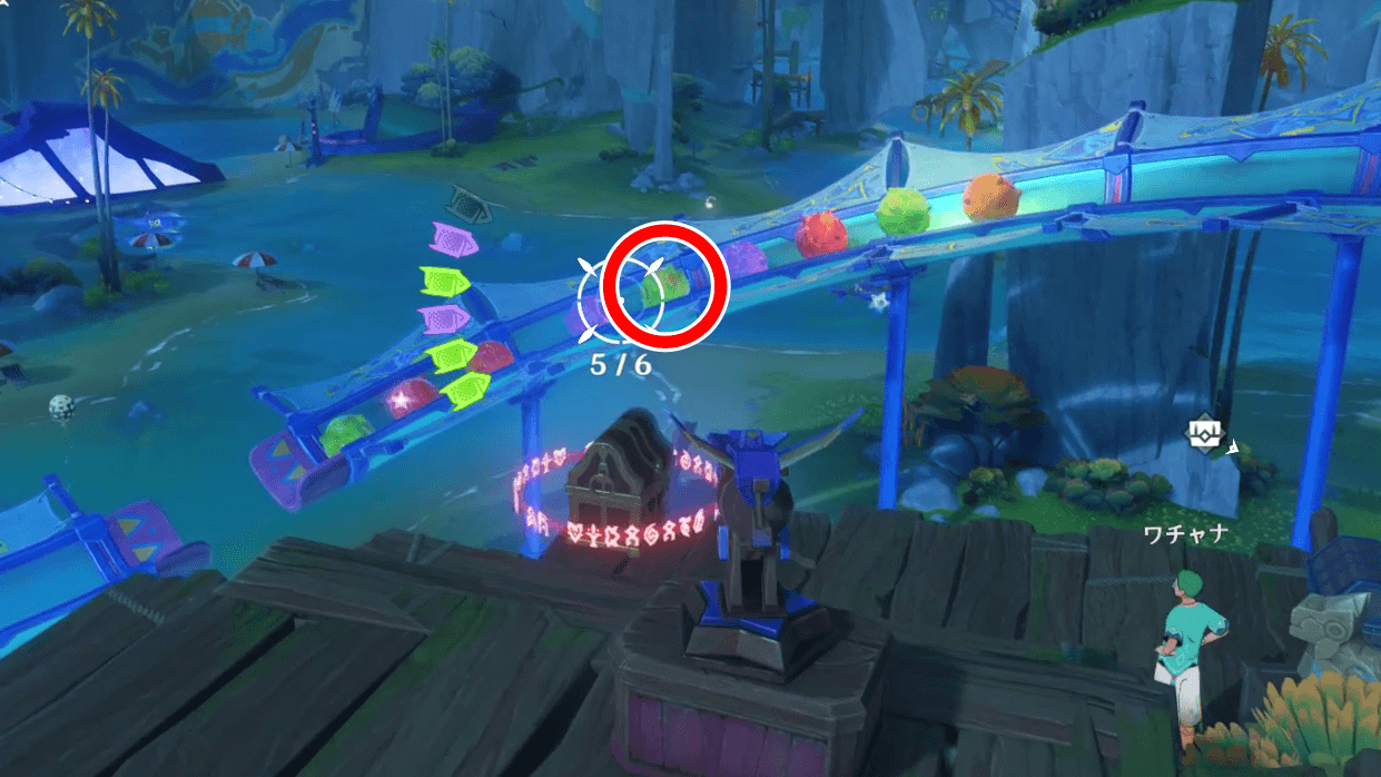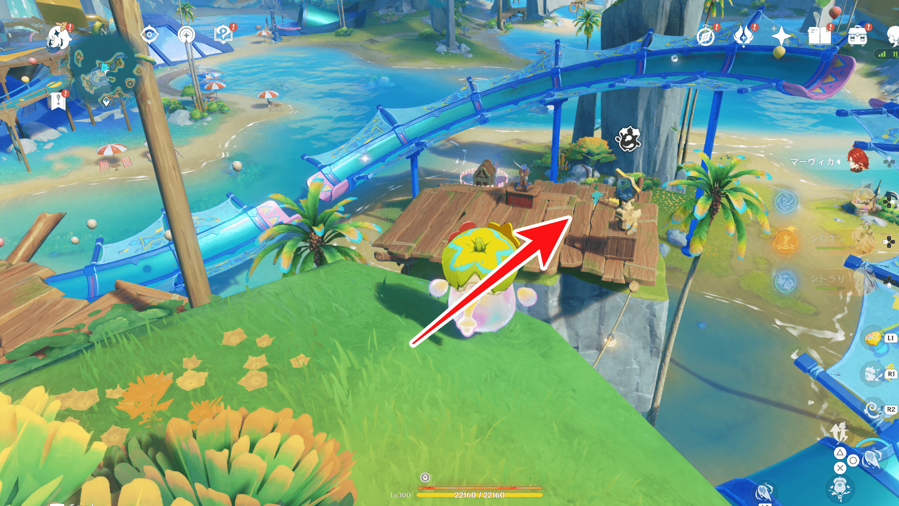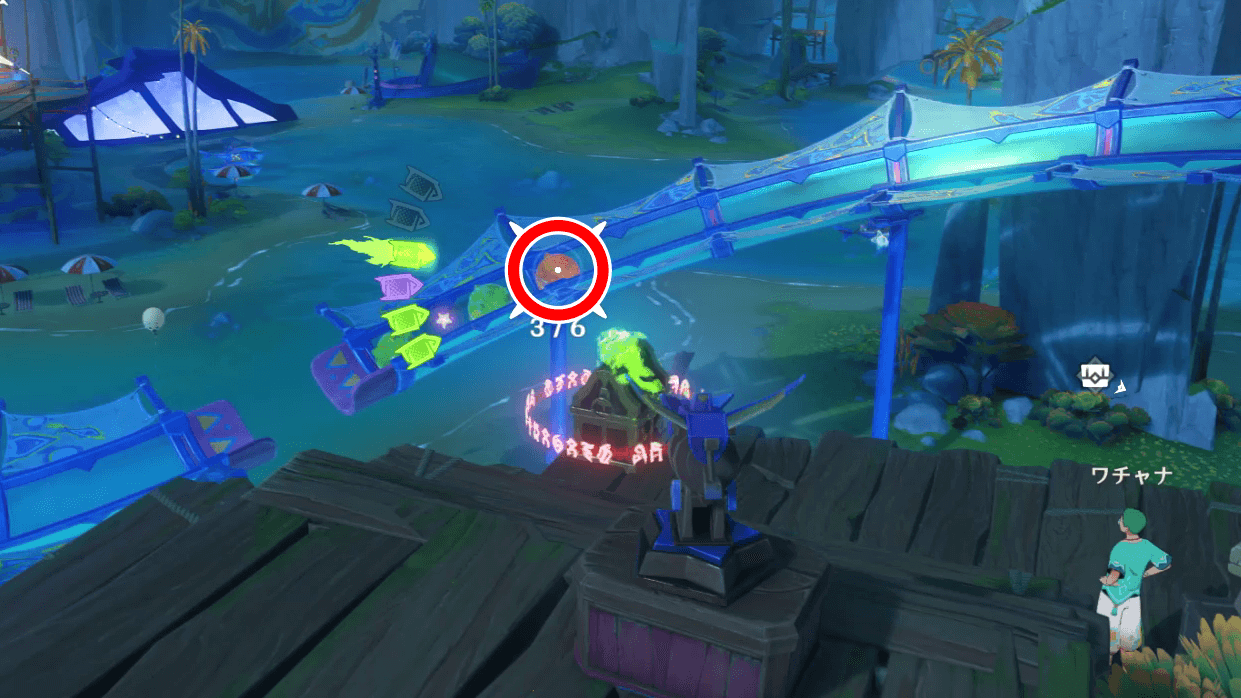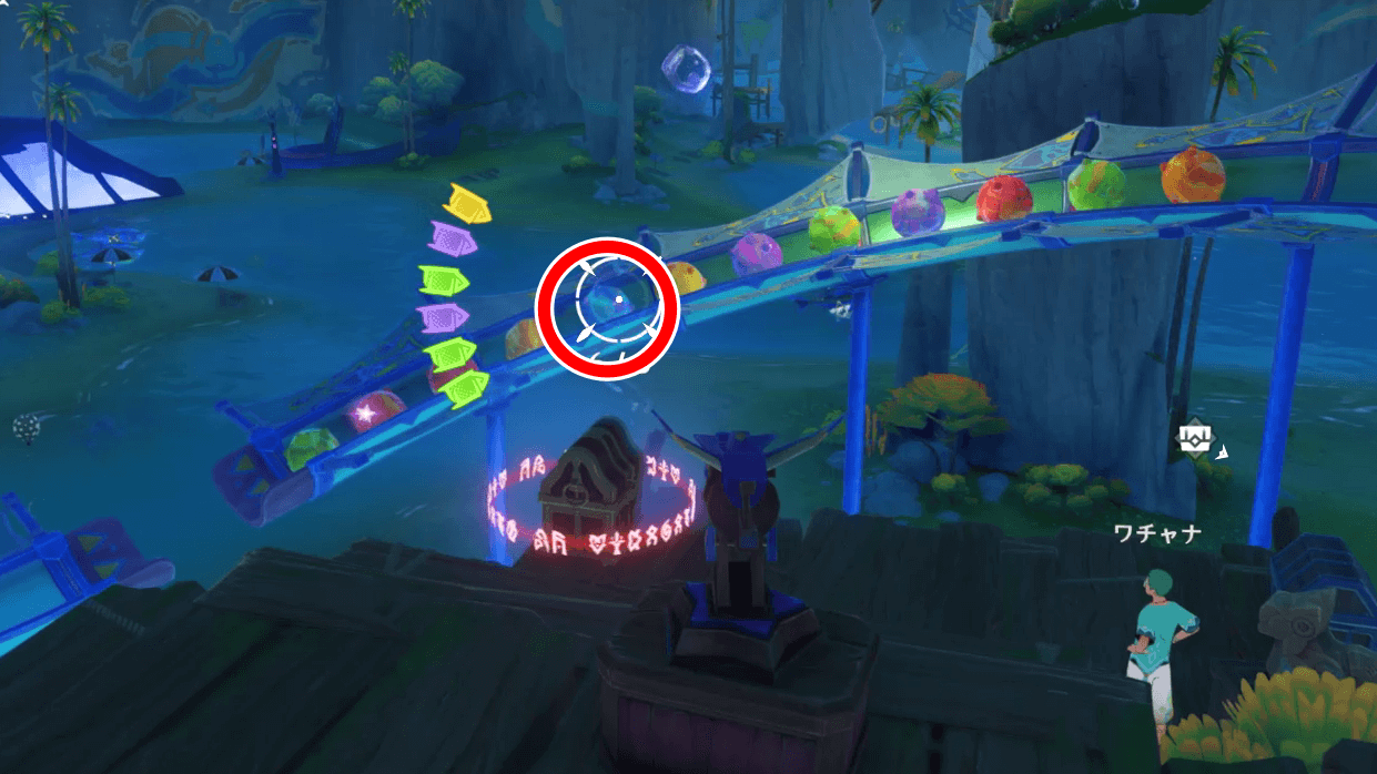 ざぶざぶ湾北部にある崖の上で、カラフルビームに挑戦できる。アシャに憑依してから移動すると、崖を短時間で登れるのでおすすめ。
