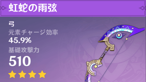虹蛇の雨弦は、装備者が待機中の時、敵に攻撃を命中させると攻撃力を上げられる。控えから追撃を発動できる、弓サブアタッカーにおすすめだ。また、武器ステータスで元素チャージ効率を上げられるため、元素爆発が強力なキャラだとなお相性が良い。