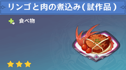 【原神】リンゴと肉の煮込み(試作品)のレシピ入手方法と必要素材
