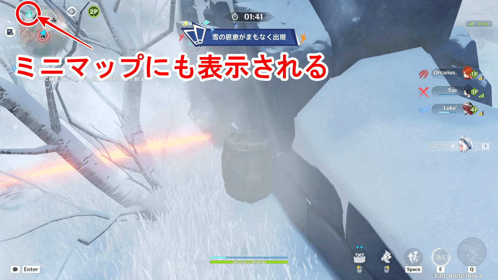 雪の恩恵を取得すると、強力なスキルを使用可能になる。雪の恩恵はミニマップに表示されるため、可能な限り取りに行こう。