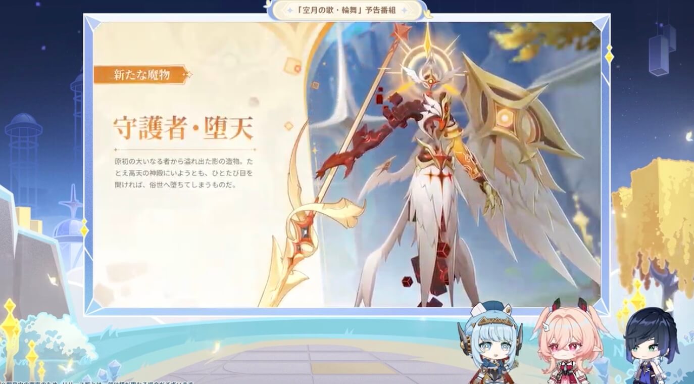 新エリアにフィールドボス「守護者・堕天」が出現するようになる。実装タイミング的に、リンネアの育成素材をドロップすると考えられる。