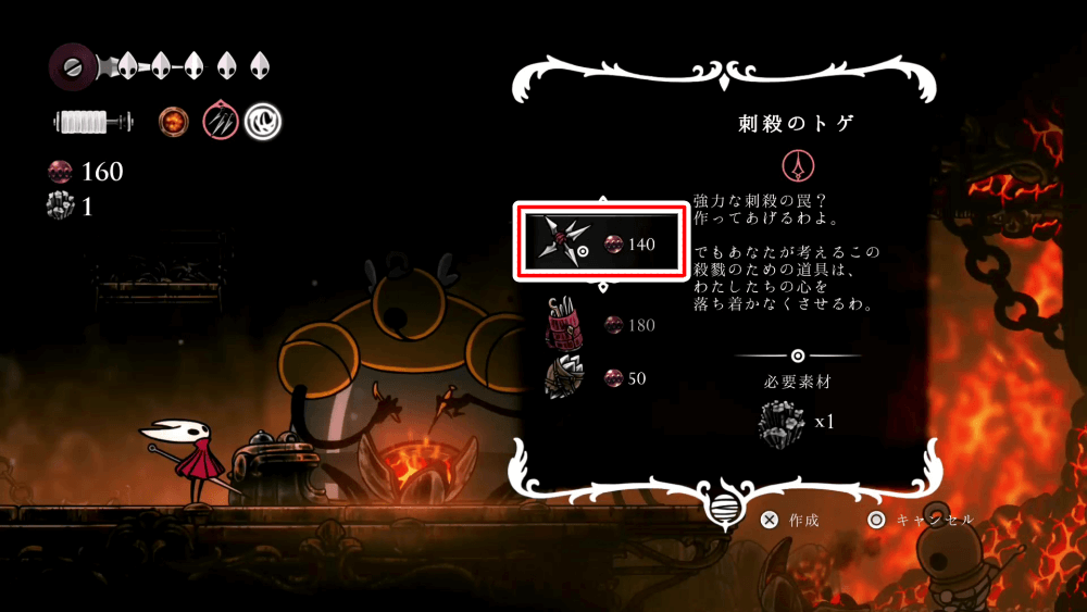 ホロウナイトシルクソングの道具「刺殺のトゲ」を解説。シルクソングの刺殺のトゲの入手場所や効果についてを掲載しています。